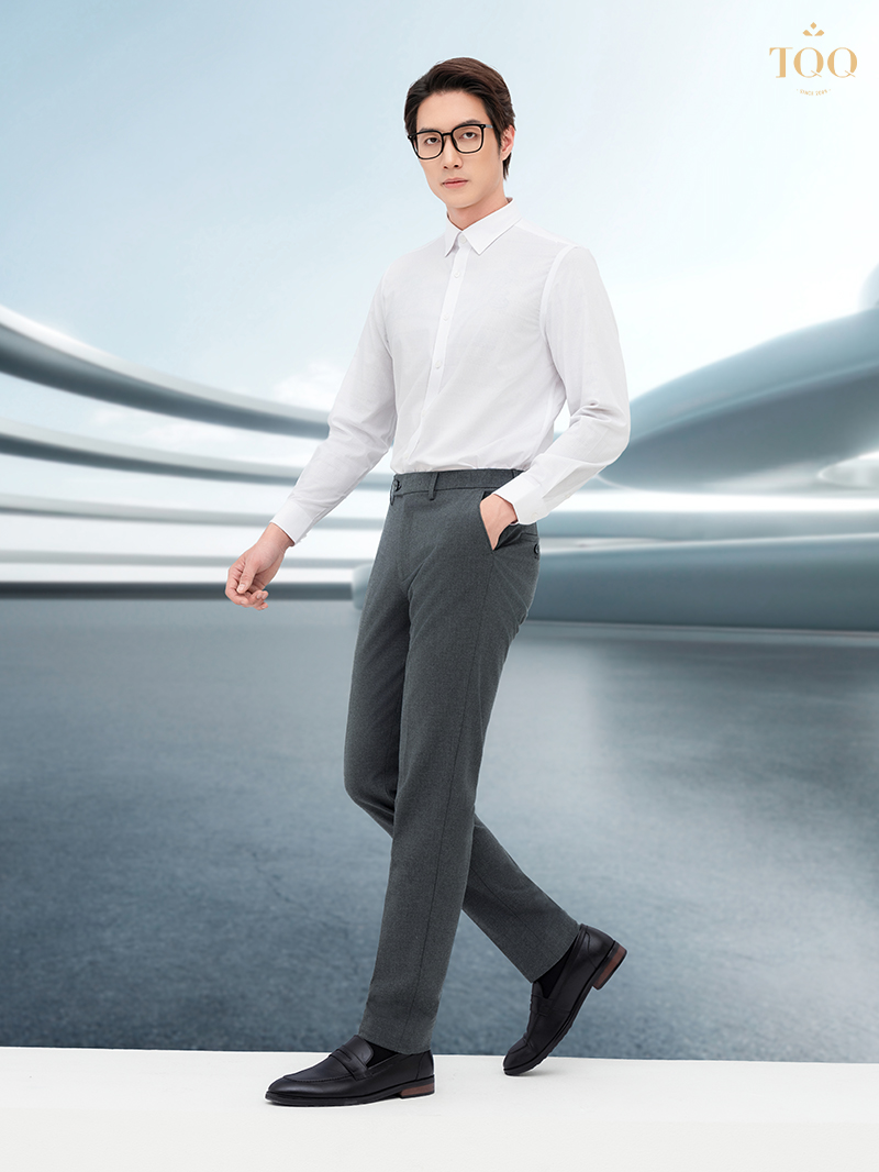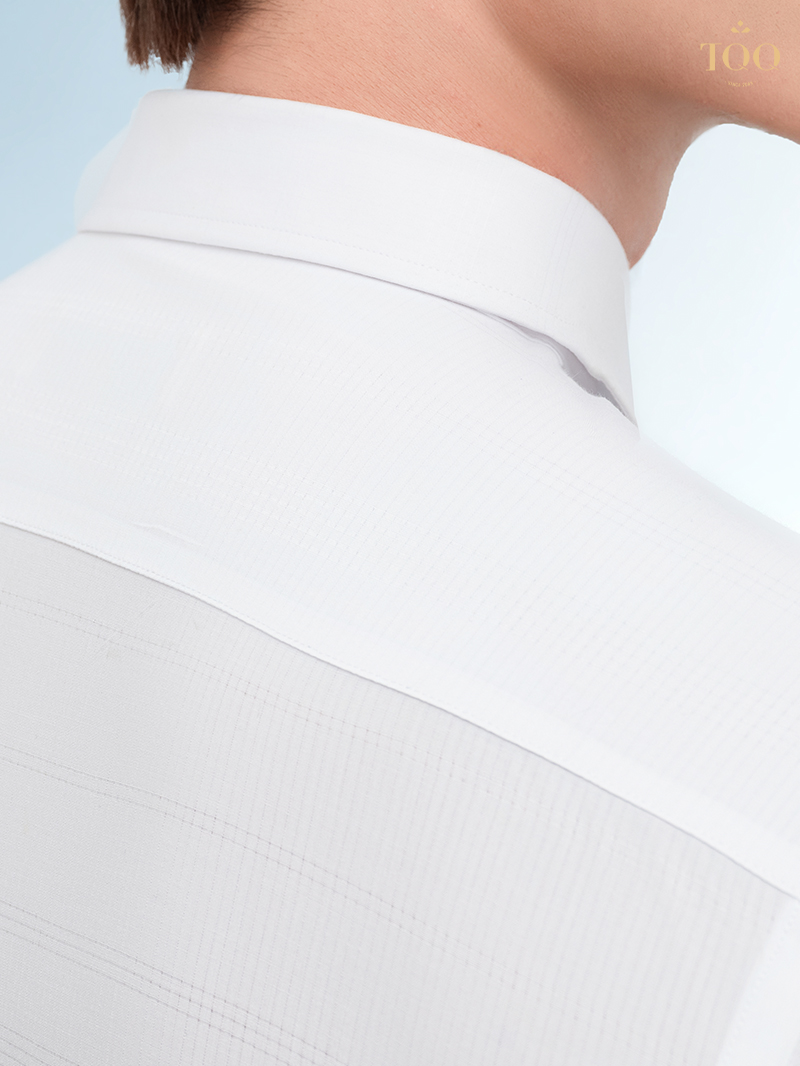 – Họa tiết kẻ chìm đối xứng mang lại sự lạ mắt trên nền áo sơ mi trắng kinh điển