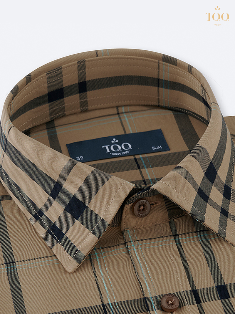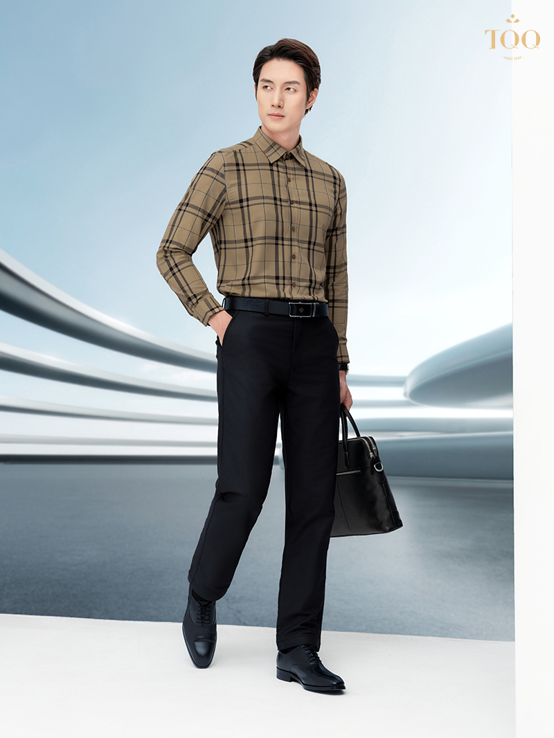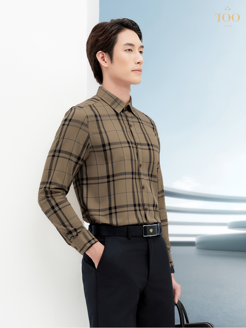 – Cổ áo cứng áo, dáng slimfit đứng phom, tôn dáng người mặc.